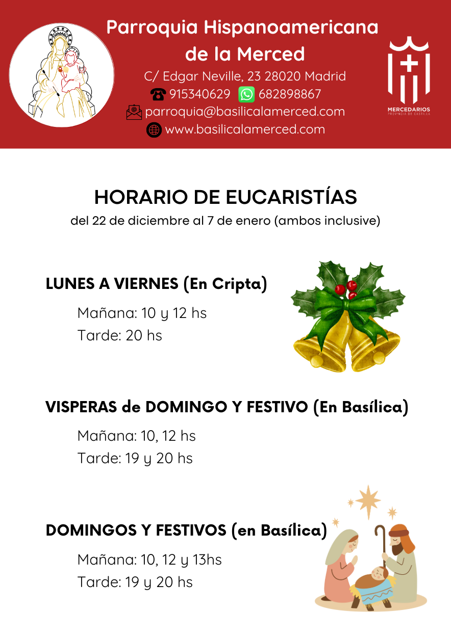 HORARIO DE EUCARISTÍAS EN NAVIDAD