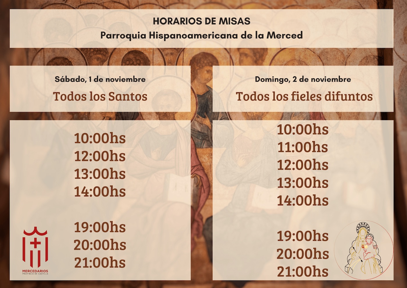 HORARIO DE MISAS PARA LOS DIAS 1 Y 2 DE NOVIEMBRE